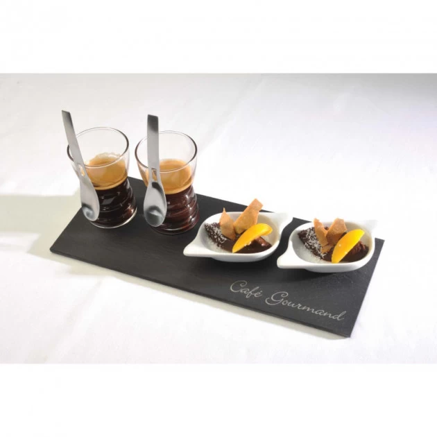 Pour vos cafés gourmands en duo, LeBrun vous propose cet ensemble composé d’une ardoise gravée au laser, de 2 verres, de 2 porcelaines Prodesign ovales et de 2 cuillères à crochet Atoll.