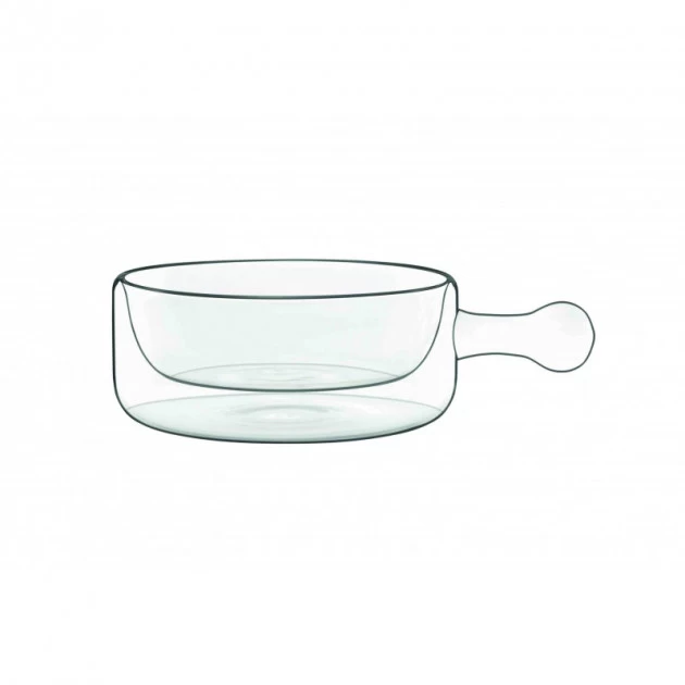 La casserole en verre double paroi Luigi Bormioli THERMIC GLASS dispose d’une poignée et est faite en verre borosilicate, ce qui lui confère de nombreuses qualités. Elle est avant tout très résistante, que ce soit aux chocs mécaniques comme aux fortes températures. Soupe brûlante, plat en sauce tout juste sorti du feu : la casserole en verre double paroi Luigi Bormioli conserve la température du plat et l’isole en même temps. De ce fait, même les mousses les plus fragiles se conservent plus longtemps.