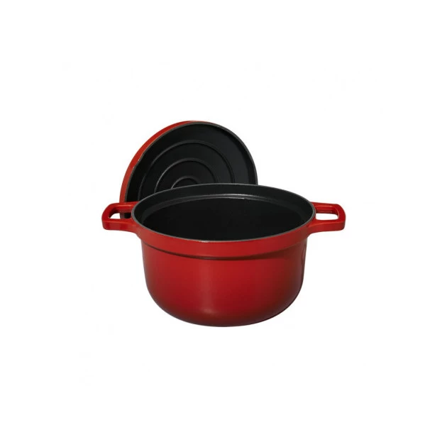 Cette cocotte à riz est émaillée couleur rubis (rouge) pour mettre en valeur votre table et votre batterie de cuisine. Entièrement fabriquée en France, son émaillage est réalisé à la main, rendant chaque pièce de la gamme originale. Composée de fonte émaillée, cette cocotte ronde est résistante et convient à tous les types de feux.