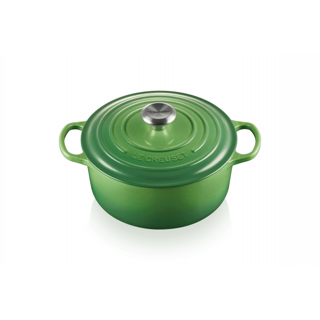 Fabriquée en France, la Cocotte en Fonte Ronde 24 cm Bamboo Le Creuset Signature dispose d’une contenance de 4,2 L idéale pour préparer des plats généreux pour 4 à 6 personnes. Garantie à vie, la cocotte de la marque Le Creuset est réputée pour sa fonte émaillée robuste qui lui assure une protection contre les rayures mais également une bonne répartition de la chaleur.