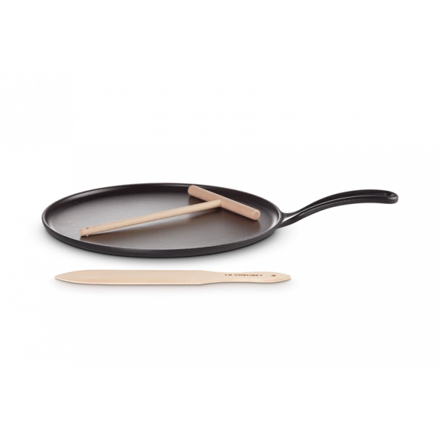 Crêpière en Fonte 27 cm Noir Mat avec Spatule & Râteau Le Creuset