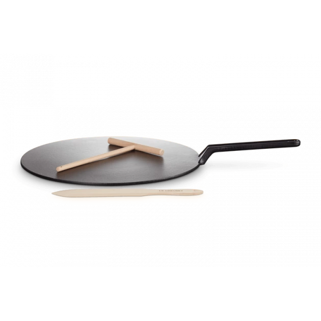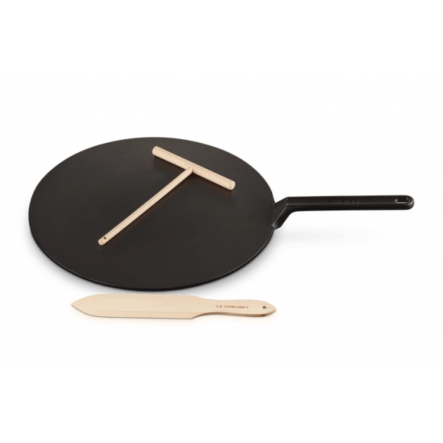 Crêpière Fonte Émaillée 32 cm Noir avec Accessoires Le Creuset