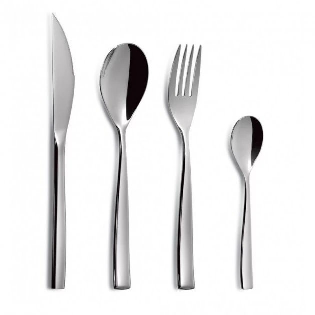 Les couverts de la ménagères Ibiza sont en acier inoxydable 18/10 (18 % de chrome pour résister à l’oxydation et 10% de nickel pour améliorer la neutralité alimentaire du matériau). L’acier inox 18/10 est considéré comme le meilleur acier pour des couverts de qualité, pour sa robustesse et sa neutralité alimentaire (il ne craint pas le jus de citron par exemple).