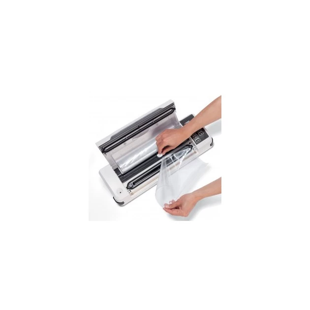 La machine sous vide est capable de mettre sous vide les aliments en boîte (tuyau adapté fourni) ou en sachet. Cette dernière méthode offre un gain de place considérable et permet la cuisson ou le réchauffage directement au bain-marie. Le voyant lumineux de la machine à emballer sous vide permet de s’assurer que le sachet est correctement scellé.