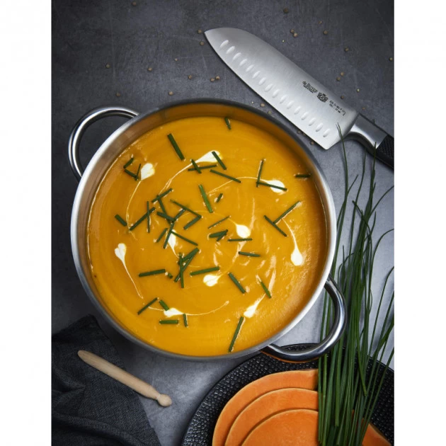 Avec cette marmite de cuisine de qualité professionnelle, vous serez paré pour réaliser pot au feu et soupe en toute simplicité. Avec ses grandes dimensions, la Marmite Inox Ø32cm Prim’Appety De Buyer dispose d’un volume utile de 25 litres, de quoi cuire beaucoup de légumes. Malgré sa grande taille, cette marmite inox est simple à utiliser. Avec ses deux anses soudées et son bord verseur, elle est facilement maniable. Cette marmite De Buyer, s’adapte à de nombreux usages. Que vous soyez professionnel ou particulier, vous trouverez rapidement une place à cette marmite dans votre cuisine. Compatible tous feux dont induction, cette marmite professionnelle passe au lave-vaisselle et peut donc être utilisée de façon quotidienne.