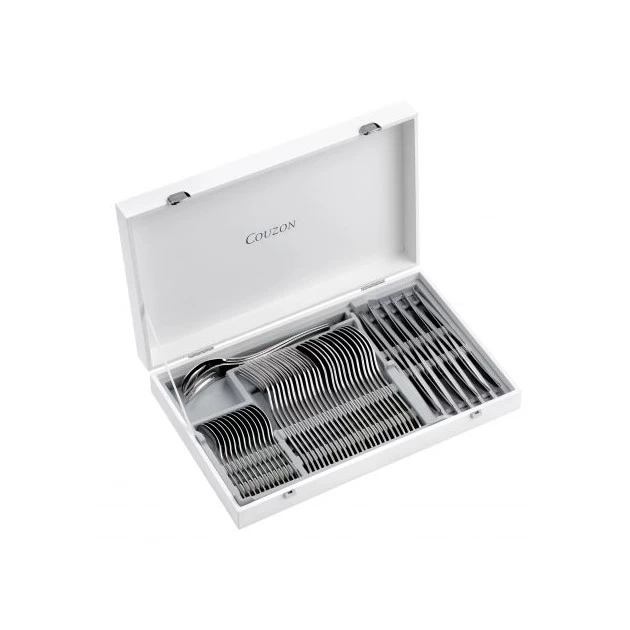 Profitez d’une ménagère Couzon à la fois élégante, sobre et robuste avec ces 50 couverts d’épaisseur 4 mm de la collection Neuvième ART. Grâce à ce coffret en bois contenant 50 pièces, vous aurez tout ce qu’il vous faut pour une table de 12 personnes : fourchettes de table, cuillères de table, couteaux et cuillère à café.