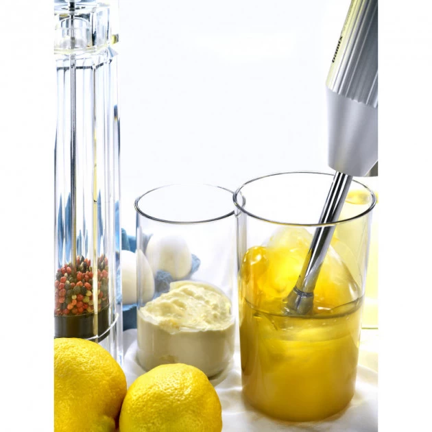 Le Bamix Black Edition est fourni avec des accessoires exclusifs qui vous permettent de combler toutes vos envies culinaires. 4 disques différents à adapter en fonction de vos besoins, un processeur de 250 ml, et deux gobelets dont un avec un bec verseur qui vous permettent de contenir vos préparations et de les transvaser facilement. Le cordon d’alimentation qui relie le mixeur à son support est torsadé, pour ne pas risquer qu’il s’enraye dans le disque du mixeur, ou encore qu’il ne traîne sur votre plan de travail. En plus d’être puissant, le Bamix M250 est silencieux pour cuisiner sans bruit et sans effort, et reste étanche jusqu’au dessus des boutons poussoirs.