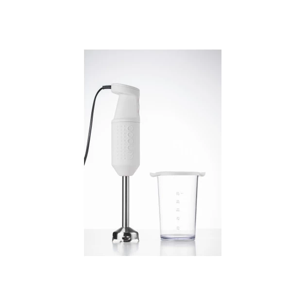 Transformez vos légumes en soupe à même la casserole ou montez une chantilly au dernier moment grâce au Mixeur Plongeant Bodum. Doté de 3 lames interchangeables, il vous permettra de mixer, fouetter ou encore mélanger en un seul geste et en quelques secondes. Le mixeur plongeant Bodum dispose d’un revêtement antidérapant, pour un toucher agréable et une prise en main en toute sécurité, notamment sil elles sont mouillées. Il est fourni avec un verre gradué de 50 cl. Vous pourrez directement mixer votre préparation et la conserver grâce à son couvercle hermétique.