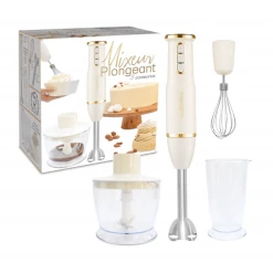 D’une puissance de 600 watts, grâce à ses accessoires et ses 3 vitesses, vous pourrez facilement réaliser tous types de préparations ou vous inspirer de celles présentes dans le livret recette fourni avec le mixeur.