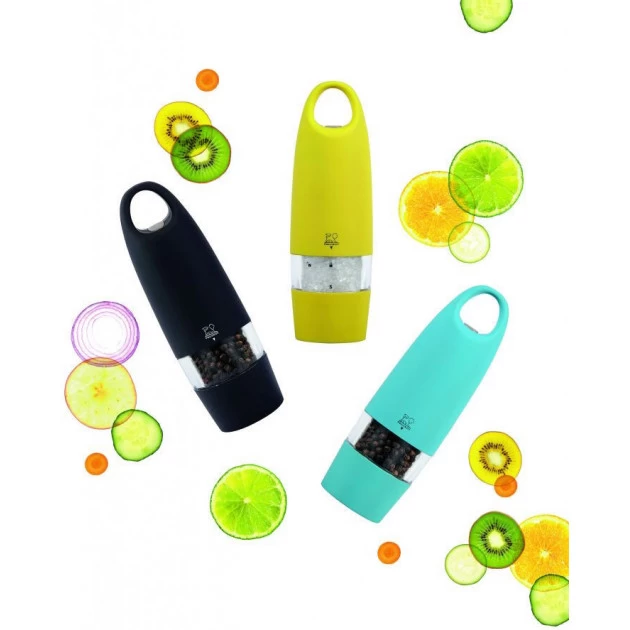 Accompagnez ce Moulin Sel Electrique d’un Moulin Poivre aux couleurs originales : Jaune Tilleul ou Bleu Lagon ? Sinon, il existe également dans la même couleur )